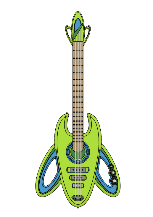 I am in the process of designing a series for four instruments using Fusion 360, each inspired by different shape profiles and insects. Below are the finished bass and guitar designs - keytar and drum designs coming soon.
